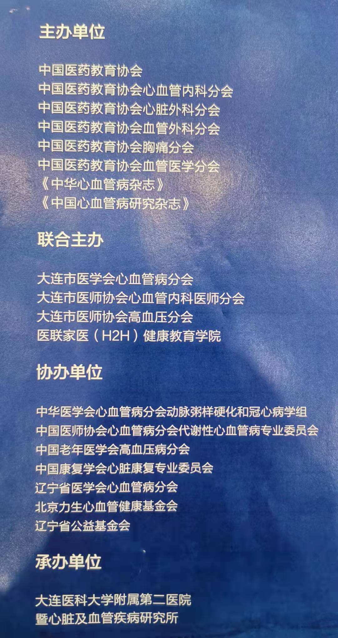 由中国医药教育协会、辽宁省医学会心血管病分会、辽宁省医师协会、大连市医学会、大连市医师协会、大连市医师协会高血压分会、中国医师协会心血管内科医师分会、中国老年医学会高血压病分会、中国医师协会心血管分会、代谢性心血管疾病专业委员会、中国康复学会心脏康复委员会、中华心血管病杂志主办,大连医科大学附属第二医院、大连医科大学心脏及血管病研究所承办的“第17届中国大连国际心血管病论坛”,暨“首届中国心血管病防治大会”、“第四届中国大连心脏康复大会”、“2019中国老年医学会高血压分会辽宁工作组会议”、“中华医学会杂志社指南与进展巡讲(大连站)”及“2019大连市心血管病年会”,将于2019年10月18日--10月20日在美丽的滨城大连举行。我代表大会组委会诚挚邀请您莅临。